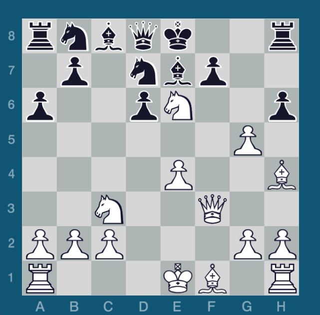 e4 c5, 2. Nf3 d6, 3 d4 cxd4, 4 Nxd4 Nf6, 5 Nc3 a6, 6 Bg5 e6 7 f4 Be7, 8 Qf3 h6, 9 Bh4 g5, 10 fxg5 Nfd7.