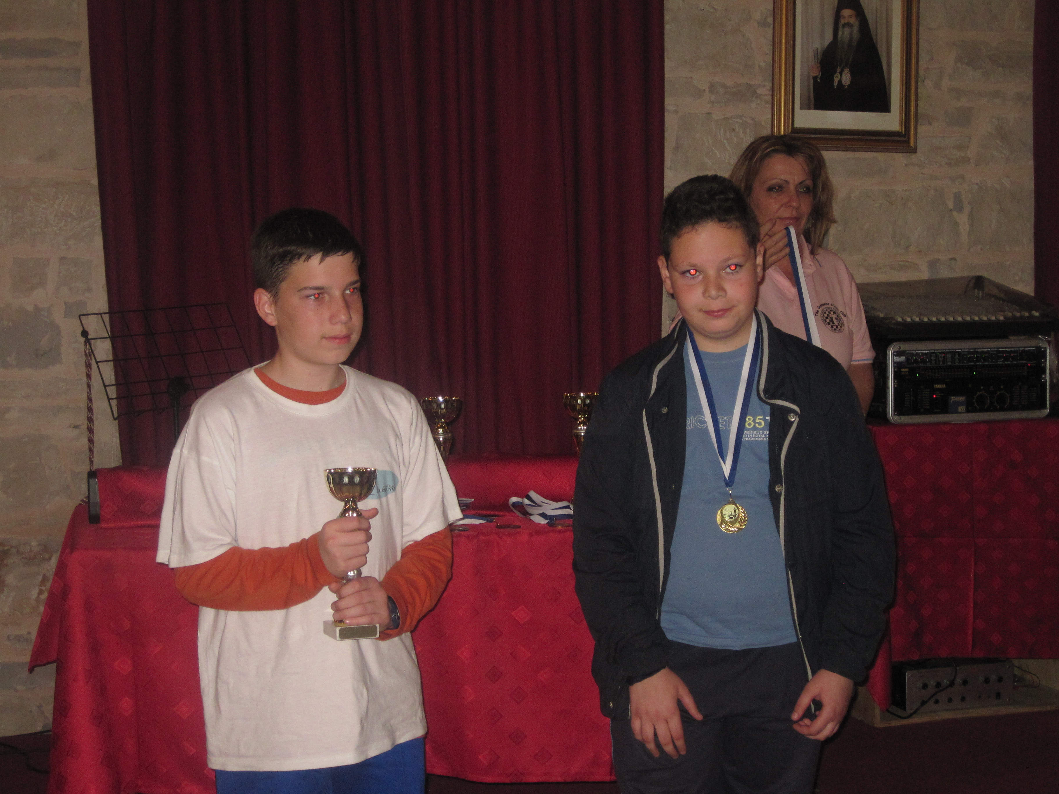 Ο Κώστας Στειακάκης (4/7) κατέκτησε το χάλκινο μετάλλιο στην κατηγορία κάτω των 18, ενώ χάλκινα μετάλλια κατέκτησαν τόσο ο Γιώργος Χαιρέτης (κάτω των 12) με 4/7, όσο και ο Χάρης Κονιός (κάτω των 10) με 3,5/7.