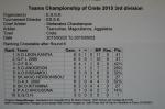 Το απόγευμα του Σαββάτου, παίχθηκε το θρίλερ! Αντίπαλος ήταν η ΣΑ Χερσονήσου. Το ματς άρχισε καλά για την ομάδα των Ανωγείων που βρισκόταν μπροστά στο σκορ. Η ΣΑΧ όμως όλο και πλησίαζε και κάποια στιγμή ήταν πολύ πιθανό να κάνει και την ολική ανατροπή. Η νίκη άλλαξε πλευρά πολλές φορές για να γλιστρήσει τελικά μέσα από τα χέρια και των δύο. 5-5! Ισοπαλία, σε μια αναμέτρηση που έσπασαν καρδιές και η αγωνία χτύπησε ταβάνι. Ένα ματς που τα είχε όλα! Ματ που σώθηκαν με σερί μοναδικών κινήσεων, κομμάτια που «στήθηκαν» στην πίεση χρόνου, όμορφα στρατηγικά πλάνα που ξεδιπλώθηκαν απρόσκοπτα και ένα φινάλε βασιλισσών που μας έκοψε την ανάσα. Παρότι δεν κέρδισε τελικά καμιά από τις δύο ομάδες, στα μάτια των παιχτών μετά το τέλος, έβλεπες μια αλλόκοτη ευτυχία, που προερχόταν από το ίδιο το γεγονός ότι πήραν μέρος σε μια τέτοια αναμέτρηση, ανεξαρτήτως αποτελέσματος.