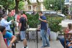 Ήταν – έχω την αίσθηση – το καλύτερο από όλα όσα προηγήθηκαν. Περισσότερες και ισχυρότερες συμμετοχές, ζωντανή μετάδοση 20 παρτίδων με ζωντανό σχολιασμό χάρη στον Σωτήρη Λογοθέτη (ξέρω Σωτήρη, δεν σου αρέσουν οι δημόσιες ευχαριστίες και διατρέχω τον κίνδυνο αυτή τη στιγμή να μου θυμώσεις, γι’ αυτό δεν θα σε ευχαριστήσω, μονάχα θα πω για άλλη μια φορά πόσο χάρηκα που ήσουν εδώ και φέτος!), αλλά και τους Γιώργη Νταγιαντά και Γιώργη Καλλέργη οι οποίοι έκαναν «μαγικά» για να έχουμε τελικά ικανή σύνδεση ίντερνετ ώστε να γίνει η μετάδοση. Επίσης στο φετινό τουρνουά για πρώτη φορά, ο ΙΜ Ηλίας Κουρκουνάκης περίμενε έξω από τον χώρο των αγώνων τους σκακιστές που τέλειωναν τις παρτίδες του και όποιος το επιθυμούσε ανέλυαν μαζί την παρτίδα. Μια κίνηση που είμαι σε θέση να γνωρίζω ότι ευχαρίστησε πάρα πολλούς από τους συμμετέχοντες. Ο ΙΜ Άγγελος Σανδαλάκης βοήθησε επίσης πάρα πολύ την διοργάνωση, τόσο με τον ζωντανό σχολιασμό του, όσο και με την επίδειξη «τυφλού» σιμουλτανέ που πραγματοποίησε ως μέρος των -πολύ πλούσιων και φέτος – παραλλήλων εκδηλώσεων. Η Αναστασία Κάρλοβιτς βοήθησε στον ζωντανό σχολιασμό, ενώ με την φωτογραφική της ματιά αποτύπωσε θαυμάσια αυτό που η ίδια τιτλοφόρησε «Chess fever», από τον οποίο …νόσησαν τα Ανώγεια απ’ άκρη σ’ άκρη όλες αυτές τις μέρες. Το σκάκι ήταν παντού… Καφενεία, πλατείες, ψησταριές, ταβέρνες, …βενζινάδικα, παντού παίζονταν σκάκι. Τις περισσότερες φωτογραφίες όμως τις τράβηξε όπως πάντα η Τζούλια. Ήταν ξανά παντού, να απαθανατίζει την κάθε μικρή …μεγάλη στιγμή, ενώ -με την βοήθεια και του Γιώργου Μαρντογιάν – κάλυψαν με ζωντανή βιντεοσκόπηση τις περισσότερες παράλληλες εκδηλώσεις.